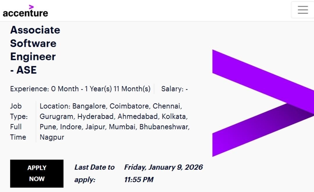 Accenture Off-campus Drive 2026 hiring Associate Software Engineer | BE/B-Tech/ME/M-Tech/MSC/MCA